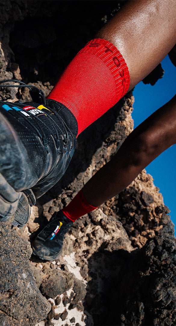 Our hiking socks are advanced compression socks, developed specifically for and with hikers, that stimulate blood circulation in the legs and maximize oxygen capacity of the muscles. Due to the improved removal of waste products in your legs, you will experience fewer complaints and more energy during and after a (long) hike.